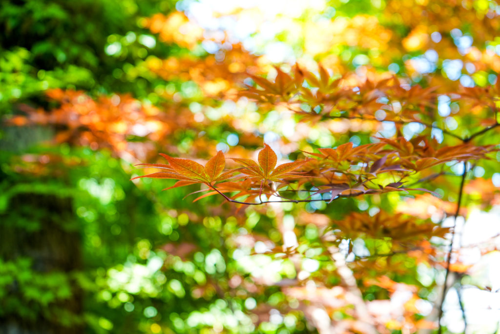 中には二、三本だけ赤い紅葉があり、緑の中にある赤がよてもよい風景でした。